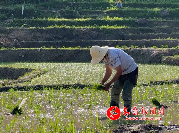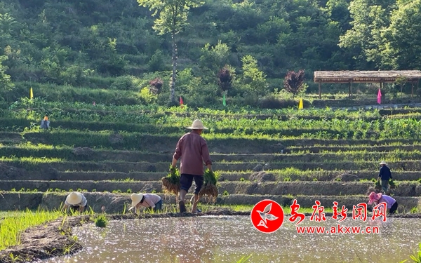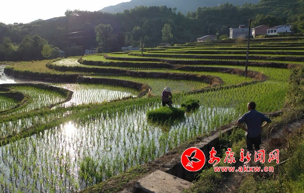 放眼望去,層層梯田披上了一襲綠色的新裝,微風(fēng)吹過(guò),秧苗輕輕搖擺,蕩漾起無(wú)限生機(jī)。在持續(xù)兩周的插秧期,村民們每天從早上六點(diǎn)一直忙到下午七點(diǎn)鐘才收工,“手把青秧插滿田”的農(nóng)忙景象與大大小小形狀各異的水田,構(gòu)成一幅詩(shī)意盎然的田園風(fēng)光圖。