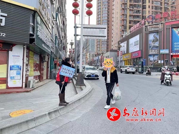 “您好,我這里有口罩給您,請(qǐng)你戴好口罩。”“請(qǐng)把口罩戴好,把鼻子蓋住。”12月7日下午,縣委宣傳部6名干部身穿紅馬甲前往負(fù)責(zé)包聯(lián)的小區(qū),向住戶宣傳規(guī)范佩戴口罩知識(shí)。在漢陰大街小巷,隨處可見身穿紅馬甲的志愿者們,他們有的手拿小喇叭,有的手持“戴口罩 不扎堆”“請(qǐng)規(guī)范佩戴口罩”等提示牌,勸導(dǎo)路上的民眾規(guī)范佩戴口罩。