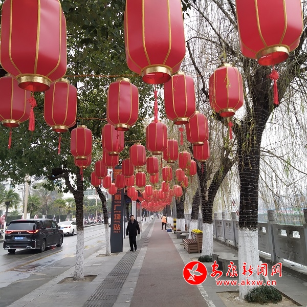 從元月初,漢陰縣市政部門就組織人力和能工巧匠對縣城區(qū)域內(nèi)各主要街道路段進行美化亮化,特別是城南新區(qū)鳳凰廣場中心的2023年卯兔巨型大紅燈籠、直通廣場中心過道兩旁設(shè)置的“幸福漢陰,卯年吉祥”八個大紅燈籠、大紅色的“福春”二字格外醒目喜慶。月河南岸數(shù)百米河濱路掛設(shè)的大紅燈籠,道路旁邊擺放的鮮花,行道樹上掛設(shè)的珍珠般的燈罩,雙八路兩側(cè)行道樹上掛設(shè)的 “歡度佳節(jié)、福字、不忘初心、牢記使命,中國夢”等發(fā)光燈牌掛件,傳統(tǒng)文化和現(xiàn)代燈光的結(jié)合,一到傍晚街區(qū)道路流光溢彩,呈現(xiàn)出燈火輝煌,火樹銀花不夜天,歡樂祥和迎新年的美景和吉祥如意的意境。