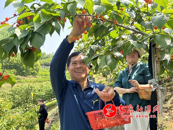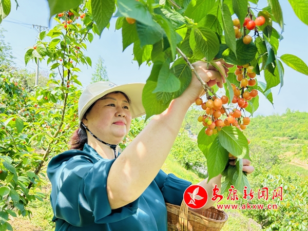 除了慕名而來的游客,村民們也忙著在櫻桃林里采摘櫻桃,享受著收獲的喜悅。因個頭大、色澤艷、果肉厚、口感佳,月河村的櫻桃深受消費者青睞,這里的櫻桃已成為當地村民的又一增收致富好路徑。