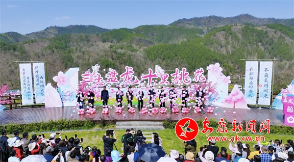 在桃花文化節(jié)上,既有桃花美景,也有文化盛宴。沐浴著和煦的春光,魔術(shù)表演、美猴王模仿秀等形式多樣的節(jié)目輪番上演,現(xiàn)場人潮涌動,觀眾掌聲不斷,氣氛十分熱烈。