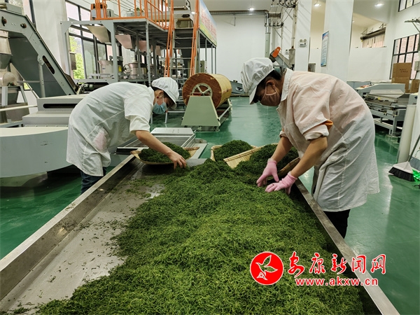 在漩渦區(qū)域加工廠的制茶生產(chǎn)車間內,鮮嫩的茶葉經(jīng)過殺青、揉捻、干燥、提香等程序,醇香的茶便新鮮出爐。“今年在開采之前,鎮(zhèn)政府面向茶葉產(chǎn)業(yè)合作社負責人和技術骨干組織了一次統(tǒng)一的培訓,對采摘手法,采摘標準進行了統(tǒng)一的指導培訓,便于我們后面的生產(chǎn)和后期產(chǎn)品的把控。”茶廠負責人馮衛(wèi)平說。