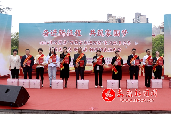 本網(wǎng)訊(通訊員 賀珍珍 熊樂(lè) 張欣欣)為進(jìn)一步弘揚(yáng)家訓(xùn)文化,傳承優(yōu)良家風(fēng),5月9日,由漢陰縣紀(jì)委監(jiān)委、縣委宣傳部主辦,漢陰縣婦聯(lián)、縣文聯(lián)承辦的“奮進(jìn)新征程 共筑中國(guó)夢(mèng)”——“萬(wàn)條家訓(xùn)進(jìn)萬(wàn)家”家風(fēng)故事分享暨最美家庭、好婆婆、好媳婦表?yè)P(yáng)大會(huì)在漢陰縣鳳凰廣場(chǎng)舉行。