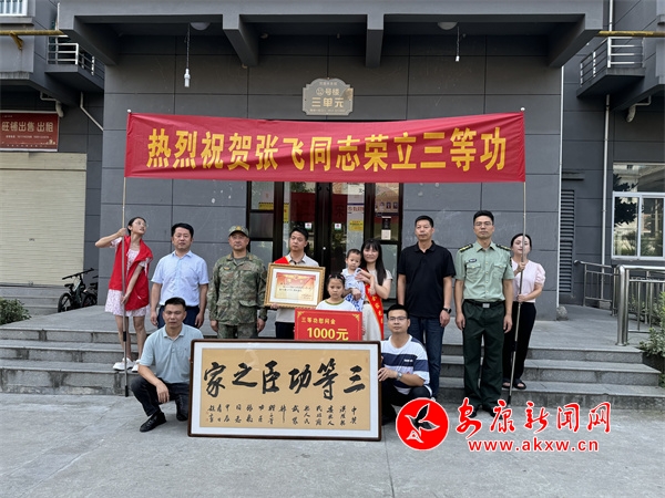 一張喜報(bào)、一枚“三等功”軍功章、一個(gè)立功牌匾、1000元的慰問(wèn)金。在熱烈喜慶的氛圍中,一份份“喜悅”送到軍人軍屬家門口,對(duì)營(yíng)造支持國(guó)防事業(yè)、尊重關(guān)愛功臣模范的社會(huì)氛圍意義非凡,左鄰右舍聞?dòng)嵍鴣?lái)、交口稱贊。慰問(wèn)組與立功受獎(jiǎng)軍人家屬進(jìn)行了親切交談,感謝他們?yōu)閲?guó)家和軍隊(duì)輸送了優(yōu)秀人才,并詳細(xì)了解家里生產(chǎn)生活情況,希望他們繼續(xù)支持孩子在部隊(duì)安心服役,為國(guó)防和軍隊(duì)現(xiàn)代化建設(shè)做出更大貢獻(xiàn)。