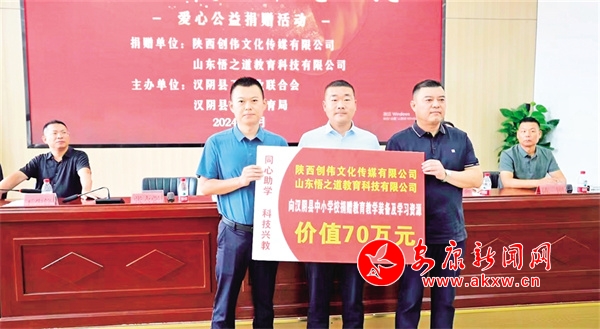 活動中,陜西創(chuàng)偉文化傳媒有限公司與山東悟之道教育科技有限公司聯(lián)合向漢陰縣26所中小學捐贈了教學無人機、電鋼琴、教師護頸按摩枕等價值70萬元的教育教學設備和學習資源,助力當?shù)亟逃聵I(yè)發(fā)展。XyS安康新聞網(wǎng)