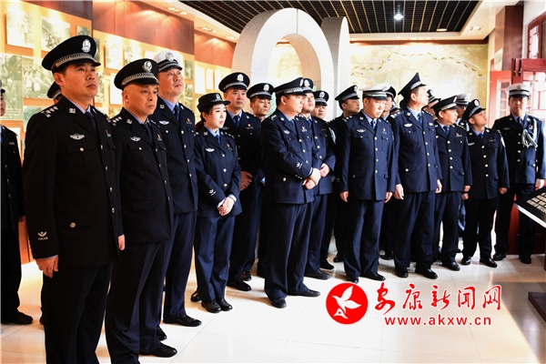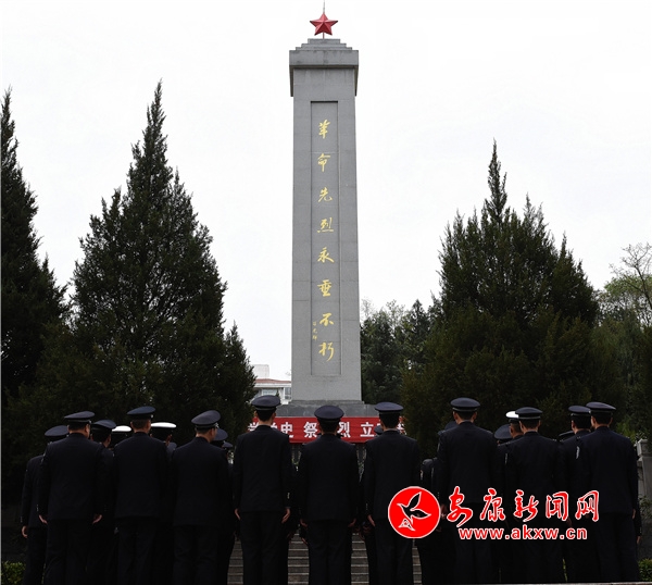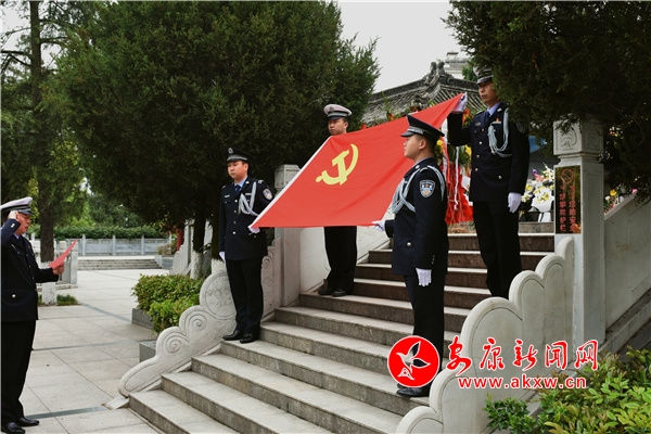 在巍然聳立的烈士紀(jì)念碑前,全體民警輔警整齊列隊(duì)、莊重肅立。民警代表首先向英雄烈士敬獻(xiàn)了花籃,全體人員脫帽肅立、鞠躬默哀,并依次上前瞻仰英雄烈士,通過(guò)回顧英雄事跡,表達(dá)對(duì)革命先烈的深切悼念和無(wú)限哀思。隨后,全體黨員同志站在烈士紀(jì)念碑前高舉右手,莊嚴(yán)宣誓,在鏗鏘誓言中重憶入黨入警初心、告慰英靈。