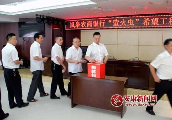 活動(dòng)中,該行黨委書記、董事長熊宗新同志宣讀了倡議書,團(tuán)縣委少先隊(duì)總輔導(dǎo)員員李思琦為嵐皋農(nóng)商銀行“螢火蟲”希望工程“信合筑夢”信貸助學(xué)服務(wù)志愿隊(duì)授旗,農(nóng)商銀行機(jī)關(guān)及城區(qū)全體職工為貧困大學(xué)生進(jìn)行了現(xiàn)場捐款,共籌集現(xiàn)金一萬余元,;與此同時(shí),在嵐皋農(nóng)商銀行各大網(wǎng)點(diǎn),也正在開展此項(xiàng)愛心捐助活動(dòng)。