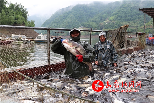 本網(wǎng)訊(通訊員 廖霖 曹婷婷 邱萌)5月7日,嵐皋縣南宮湖迎來(lái)了一年一度的拉網(wǎng)捕魚時(shí)節(jié),10多名漁民在陣陣吆喝聲中拉網(wǎng)收網(wǎng),魚兒在網(wǎng)箱里歡騰雀躍,繪制出了一幅“魚躍人歡漁家樂(lè)”的精美畫卷。優(yōu)質(zhì)的淡水資源使這里的水產(chǎn)品獲得了無(wú)公害產(chǎn)品產(chǎn)地認(rèn)證,庫(kù)區(qū)周邊的漁民將對(duì)20萬(wàn)斤花鰱魚、白鰱魚進(jìn)行集中裝車,當(dāng)日,3.2萬(wàn)斤花鰱魚、白鰱魚遠(yuǎn)銷成都等大中城市市場(chǎng)。