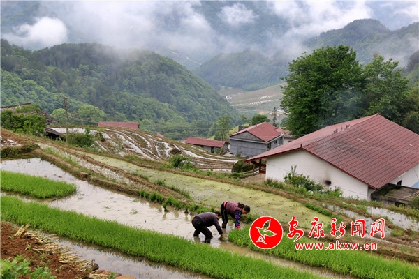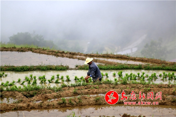 本網(wǎng)訊(通訊員 廖霖 馬桂芳)五月立夏農(nóng)耕忙,插下秧的梯田田水如鏡,波光粼粼;青山、白霧、梯田、鮮花,寧靜和諧的田園美景里,錯落有致、形態(tài)各異的梯田與朝霞和農(nóng)民忙碌勞作的身影一起構(gòu)成了一幅美麗的畫卷,吸引不少游客和攝影愛好者前來觀賞拍攝。