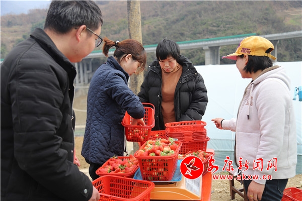 前來(lái)采摘草莓的人絡(luò)繹不絕。在采摘園區(qū),筆者看到不少游客興高采烈地提著剛采摘的草莓,排隊(duì)稱重。4位客人在棚里吃了草莓,覺(jué)著口感不錯(cuò),就一次買了1000多塊錢的草莓滿載而歸。