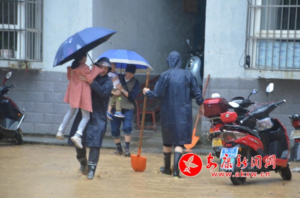 遮風(fēng)擋雨,轉(zhuǎn)移群眾。鎮(zhèn)應(yīng)急搶險隊立刻集合隊員,奔赴受災(zāi)點轉(zhuǎn)移群眾。在安置點,有容易受寒的嬰兒,有年過八旬的老人,還有腿腳不便的殘疾人,隊員們?yōu)槠湔陲L(fēng)擋雨,或背或抱,帶他們淌過二十多厘米深的泥水。應(yīng)急隊挨家挨戶組織轉(zhuǎn)移,“寧聽十句罵,不聽一聲哭”堅決不掉一戶不漏一人。農(nóng)田社區(qū)兩委成員和黨員干部也自發(fā)地行動起來,一邊在活動室開辟出一個臨時安置點,一邊協(xié)助應(yīng)急隊搶險救災(zāi)。在干群共同努力下,終于將小區(qū)安全隱患戶全部轉(zhuǎn)移。