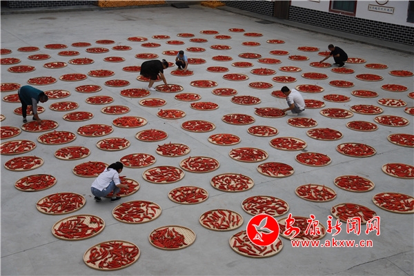 歲歲年年曬豐收,曬出的是滿滿的幸福、濃濃的鄉(xiāng)愁。農(nóng)家院落一排排簸箕鋪滿了紅紅的辣椒、金黃玉米,一張張“曬秋”圖,儼然成了一幅幸福美好的秋收畫卷。