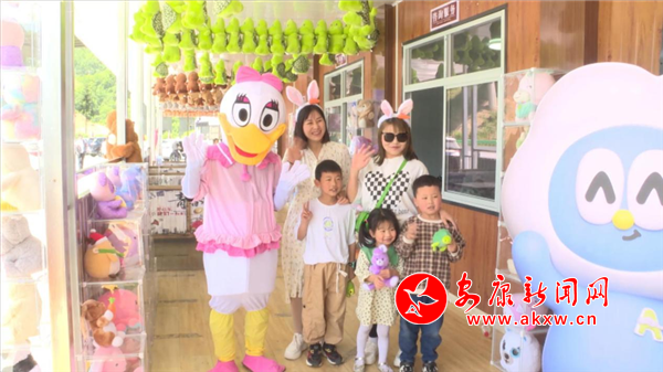 “五一”小長假來臨,嵐皋高速公路出口游客服務(wù)工作站面貌一改往日嚴(yán)肅簡約的風(fēng)格,圍繞“毛絨玩具+文旅”這一主題,不僅設(shè)置了“網(wǎng)紅”毛絨玩具拍照打卡墻和毛絨玩具裝飾的通道,更有戴上卡通發(fā)箍、穿上玩偶服飾的志愿者們?yōu)榍皝碜稍兊挠慰吞峁┵N心服務(wù)。