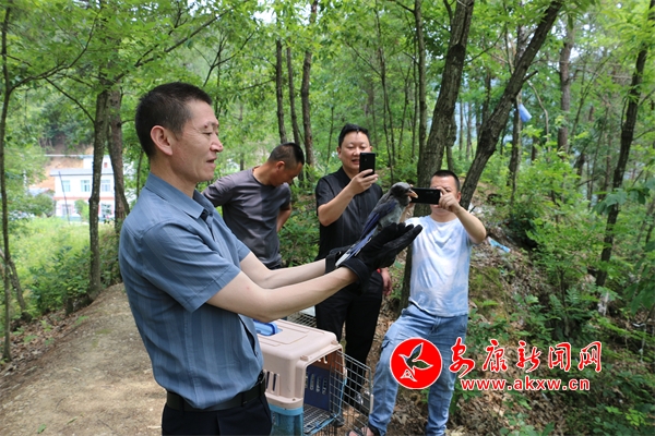本網訊(通訊員 蘇鴻浩 趙濱源 劉秋洪)6月12日,嵐皋縣林業(yè)局野生動植物保護管理站工作人員將群眾發(fā)現(xiàn)的兩只國家二級保護動物灰林鸮、斑頭鵂鹠,一只三有保護動物紅嘴藍鵲和一只省重點保護動物果子貍放歸山林。