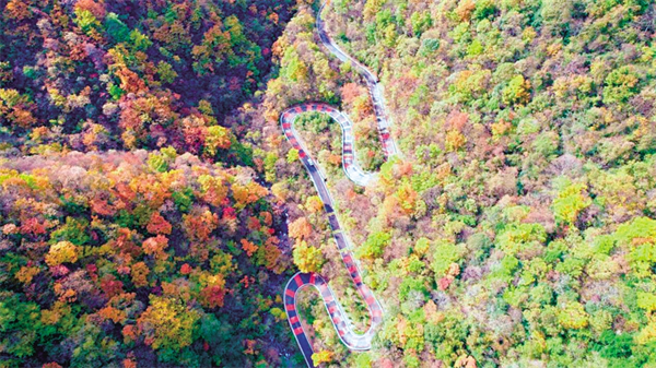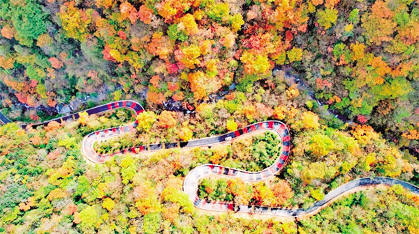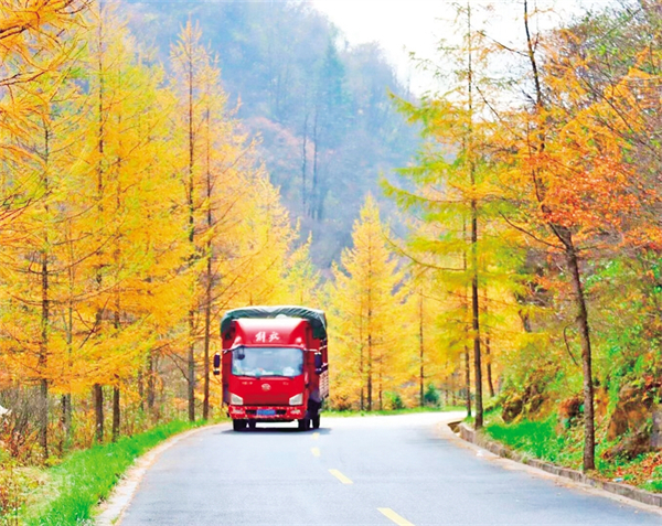 車輛穿行在如夢如幻的旅游路中。3kU安康新聞網(wǎng)