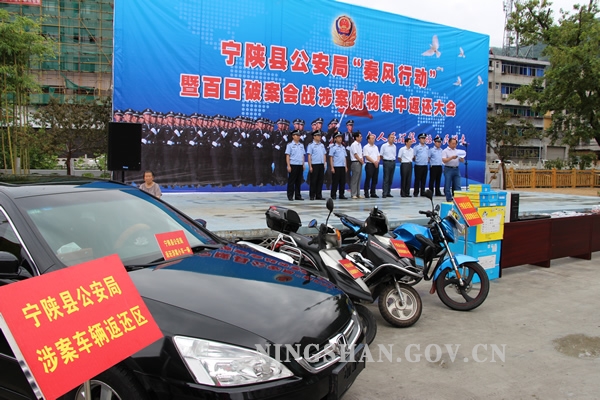 8月4日,寧陜縣召開“秦風(fēng)行動(dòng)”暨百日破案會(huì)戰(zhàn)涉案財(cái)物集中返還大會(huì),向受害群眾返還總價(jià)值60余萬(wàn)元的財(cái)物。