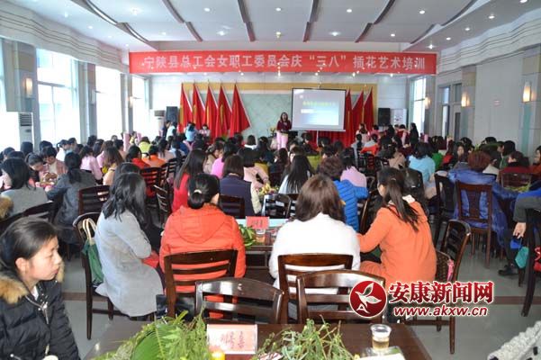 安康新聞網(wǎng)訊(通訊員 楊卓 羅有濤)3月3日下午,寧陜縣花園賓館會議室內(nèi)被五顏六色的鮮花包圍著,在一片芳香四溢、嬌巧迷人的花海中,來自寧陜87個單位200多位女職工參加了由縣總工會舉辦的插花藝術(shù)培訓(xùn)活動,慶祝即將到來的“三八”婦女節(jié)。