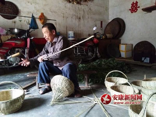 今年78歲楊繼學(xué),是寧陜縣金川鎮(zhèn)黃金村人,自幼雙目失明的他,50多年來(lái)一直靠自己的感覺(jué)與雙手,在家編織竹籃、背簍等篾具。