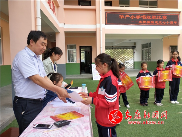 唱紅色歌曲,抒愛國(guó)之情!陡璩鎳(guó)》、《今天是你的生日》、《我愛北京天安門》......一首首嘹亮的歌聲唱著華嚴(yán)小學(xué)全體師生對(duì)祖國(guó)的熱愛,進(jìn)一步增進(jìn)了該校師生對(duì)黨、對(duì)社會(huì)主義祖國(guó)的樸素情感。