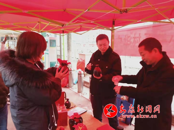 本網(wǎng)訊 (通訊員 黃倩 甄財鑫)年關將至,寧陜街頭張燈結彩,到處洋溢著春節(jié)的氣息,年貨一條街的第一個攤位格外的熱鬧,“大家都來看一看,瞧一瞧,中華村脫貧園區(qū)產品純高粱白酒‘子午小燒’,土法釀制、口感甘甜,可以免費品嘗喲。”寧陜縣民政局派駐中華村“第一書記”程建熱情的推銷著,身邊擠滿了前來購買的人群。