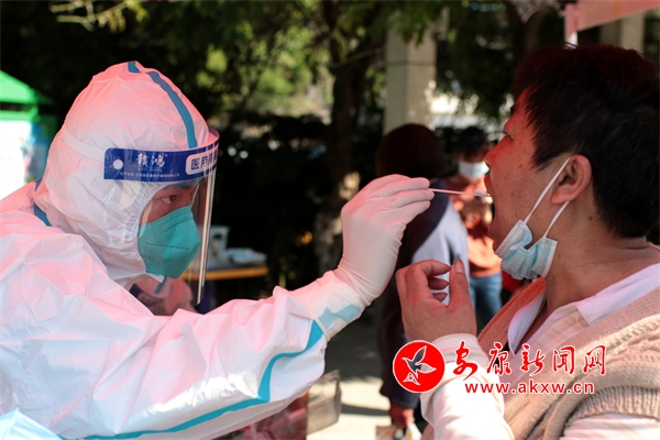 在城北社區(qū)幸;▓@核酸檢測采樣點,核酸采樣正在井然有序地進(jìn)行著。醫(yī)護人員全副武裝,溫柔輕聲引導(dǎo),手上動作不停,按照核酸檢測采樣要求,嫻熟地對前來核酸檢測的群眾進(jìn)行咽拭子采樣。