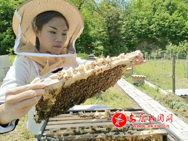 周世紅為合作社的留守婦女指導(dǎo)養(yǎng)蜂技術(shù)