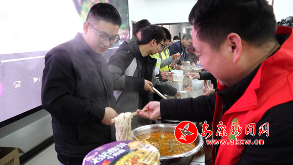 在城關(guān)鎮(zhèn)朱家嘴收費(fèi)站,收費(fèi)站秒變“愛心驛站”,當(dāng)?shù)馗刹恳约爸驹刚邔羲境巳藛T引導(dǎo)至收費(fèi)所進(jìn)行取暖休息,向滯留司乘人員耐心解釋交通管制原因,安撫司乘情緒,并送去熱水、方便面、火腿腸等方便食物,暖心提供休息、充電等延伸服務(wù)。