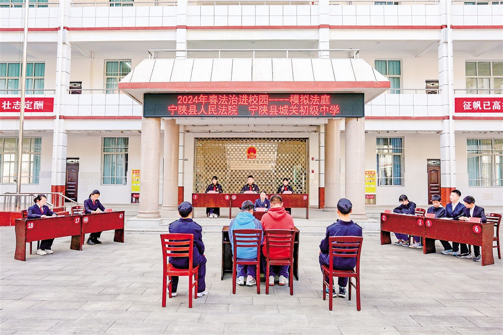 3月20日,寧陜法院與寧陜縣城關(guān)初級中學(xué)聯(lián)合開展“模擬法庭進校園”活動,模擬開庭審理一起涉未成年人盜竊案件,給學(xué)生們帶來“沉浸式”法治體驗,上了一場記憶深刻的“法治公開課”。