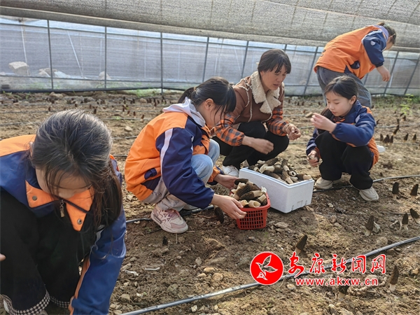 “課堂”上,學生在技術員的帶領下走進大棚種植基地,零距離接觸農(nóng)作物,師生認真聆聽技術員對菌類、瓜果等作物功效的細致介紹,并熱情地解答學生們的提問,講解種植過程,帶領學生體驗西瓜育種、采摘羊肚菌等勞動項目,增長了學生對作物的認知能力和基本勞動常識,讓學生感受到現(xiàn)代農(nóng)業(yè)技術的魅力,領會吃苦耐勞、艱苦奮斗的精神。