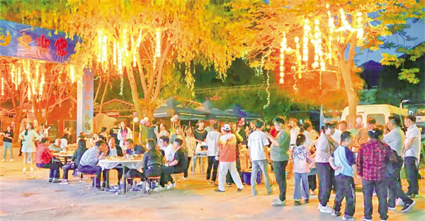 活動(dòng)現(xiàn)場(chǎng),本土樂隊(duì)、游客與特邀嘉賓輪番登臺(tái),民謠、搖滾、電子樂交織回蕩。游客們圍著篝火載歌載舞,火光映紅張張笑臉,F(xiàn)場(chǎng)設(shè)置的文創(chuàng)產(chǎn)品和小龍蝦、燒烤等特色美食攤位更是滿足了游客的多重體驗(yàn)。