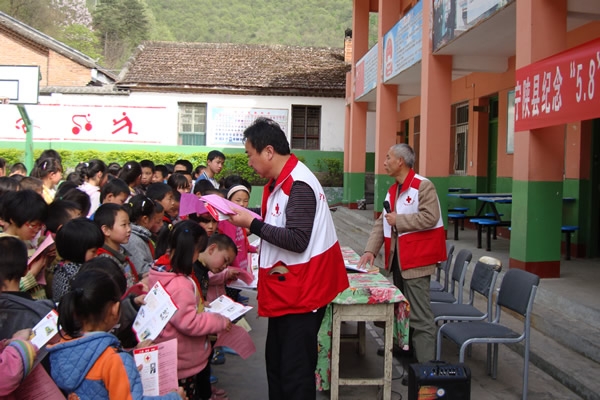 給小學(xué)生發(fā)放宣傳資料慰問貧困群眾