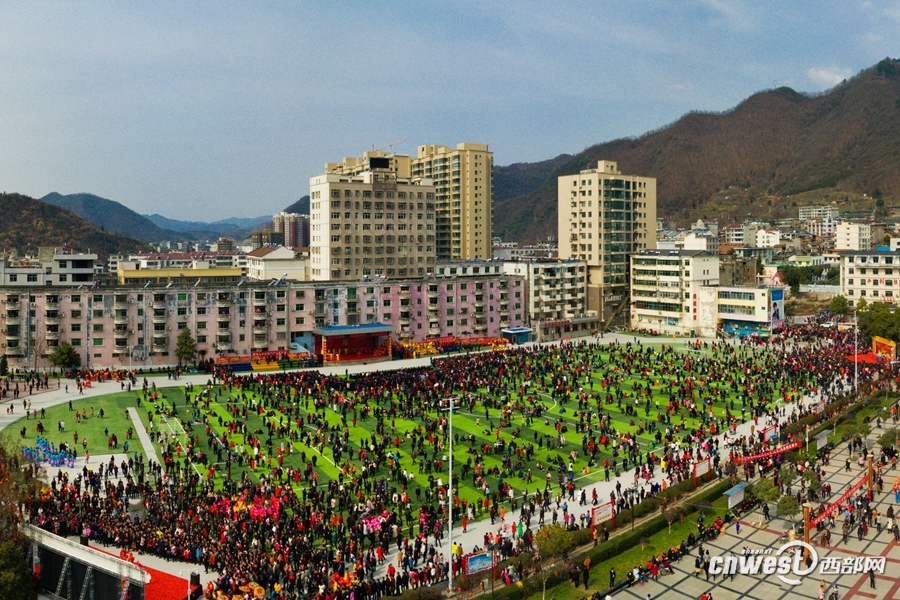 群眾從四面八方涌向平利縣文化廣場。 柳偉 攝