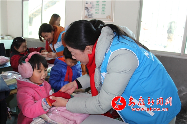 捐贈(zèng)儀式上,志愿者給孩子們發(fā)放了公益組織提供的包括書包、鋼筆、耳護(hù)、手套、棉襪、保暖內(nèi)衣在內(nèi)的,價(jià)值200余元的六件套大禮包,并親手為孩子們戴上了手套和耳護(hù),鼓勵(lì)孩子們要好好學(xué)習(xí),長(zhǎng)大后做國(guó)家的棟梁,像他們一樣用愛心去回報(bào)社會(huì)。平利援少會(huì)會(huì)長(zhǎng)介紹了協(xié)會(huì)的概況和此次活動(dòng)的目的,希望孩子們?cè)诟惺軔鄣耐瑫r(shí),要傳遞愛,要做一個(gè)對(duì)社會(huì)有用的人;大貴鎮(zhèn)中心小學(xué)負(fù)責(zé)人向援少會(huì)一行表示誠(chéng)摯的感謝,告訴孩子們要認(rèn)真學(xué)習(xí),知恩感恩。溫暖的禮物,鼓勵(lì)的話語(yǔ),讓孩子們?nèi)玢宕猴L(fēng),孩子們紛紛表示要立志樹立遠(yuǎn)大理想,刻苦學(xué)習(xí),長(zhǎng)大后能為社會(huì)做出貢獻(xiàn),將這份愛心傳遞下去!