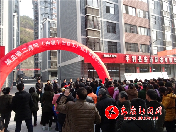 安康新聞網(wǎng)訊(通訊員 袁寶)1月17日上午,平利縣城關鎮(zhèn)在二道河白果移民搬遷安置區(qū)舉行新社區(qū)工廠招工啟動儀式,同步開展了新社區(qū)工廠招工系列活動,300余名群眾參加儀式。