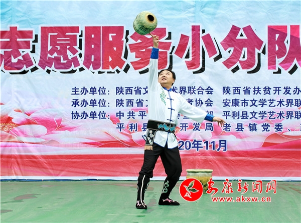 本網(wǎng)訊(通訊員 王韜)11月25日,平利縣老縣鎮(zhèn)錦屏社區(qū)文化廣場人潮如織,熱鬧非凡,陜西省文聯(lián)文藝志愿服務(wù)小分隊以“決戰(zhàn)脫貧攻堅 決勝全面小康”為主題的慰問活動在此火熱上演,20余名藝術(shù)家們以舉辦慰問演出、為當(dāng)?shù)馗鳁l戰(zhàn)線的勞動模范和先進(jìn)人物贈送書畫作品、助農(nóng)扶貧直播帶貨、文藝培訓(xùn)等活動形式,讓2000余觀眾在家門口享受了一道別開生面、美味絕倫的文化大餐。