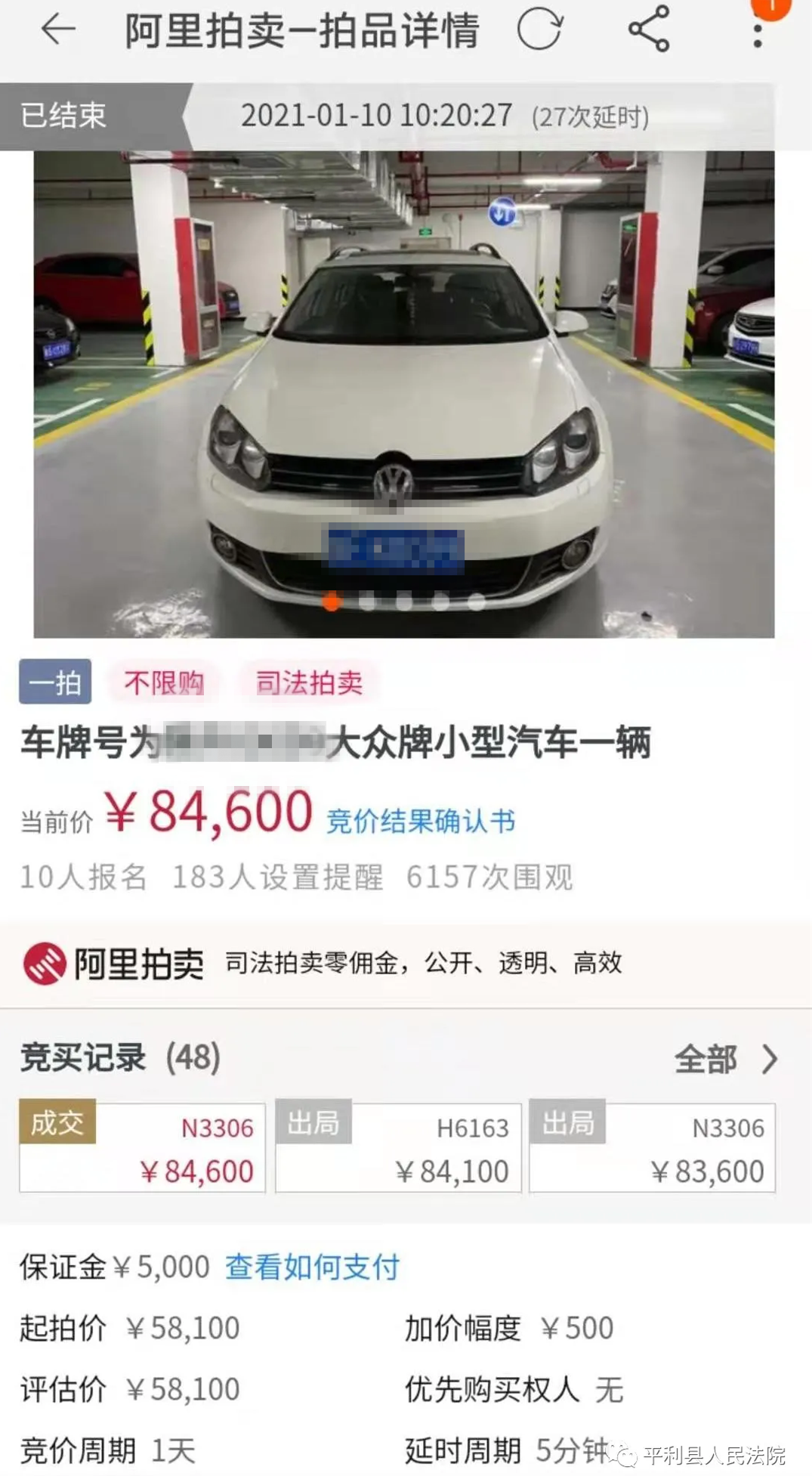 本網(wǎng)訊(通訊員 鄭欽)成交了!1月10日上午十點(diǎn)二十分,平利法院通過(guò)淘寶網(wǎng)網(wǎng)絡(luò)司法拍賣(mài)的一部大眾牌小型汽車(chē)以高出評(píng)估價(jià)百分之四十五的價(jià)格成功拍出。fa5安康新聞網(wǎng)