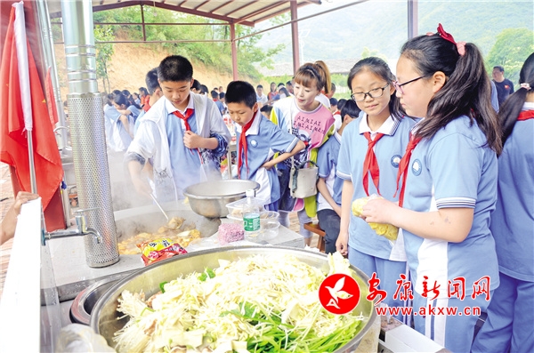 一草一木是記憶,一山一水皆含情。野營拓展課程是整個研學旅行的核心和精品,讓學生們親近自然風物,感知熟悉泥土的芬芳和厚重。課程營地集野炊、農(nóng)事體驗、野營體驗、手工制作、森林探險于一體,設有炊煙裊裊、荷塘春秋、耕耘樹藝、野蠻體魄四個活動區(qū)。200余種花卉草木,滿眼芳菲,爭奇斗艷,學生們參觀辨識認知植物,通過栽種、為植物掛牌、臨摹寫生等方式發(fā)現(xiàn)植物的奧秘,感受大自然的無窮魅力,做植物的朋友和環(huán)保小衛(wèi)士。枇杷、桃子、杏子、李子、板栗和梅子等多種果樹,可滿足學生們進行水果采摘體驗的需求,在東籬院里了解時令蔬菜、參與蔬菜種植,體驗耕種的樂趣和勞動的艱辛。在炊煙裊裊活動區(qū),10座老式土灶,配套10個操作臺、10個清潔池、10套石磨,一字整齊排開,選菜、洗菜、切菜、生火、煮飯、炒菜,一切都井井有條。學生們在寓教于樂的過程中,感受野炊的樂趣,初步掌握飯菜制作的基本步驟和相關技巧,并感受一蔬一飯的來之不易,懂得珍惜糧食和蔬菜。參與了活動的小學生唐梓涵深有感觸地說:“大家盡情享受一起努力做出來的美食,吃在嘴里,樂在心頭,格外美滋滋的。我們也知道了,父母每天精心為我們做好吃的,真的很不容易。”eFp安康新聞網(wǎng)