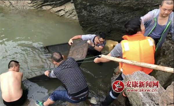 當(dāng)日下午16:00時(shí)許,石泉縣水利局接舉報(bào)稱石泉水庫(kù)大壩下有人非法電魚消息后,當(dāng)即指派漁政執(zhí)法人員前往查處。經(jīng)現(xiàn)場(chǎng)查看,水庫(kù)大壩下卻有一疑似捕魚船只在壩下江面游弋,行跡十分可疑。由于大壩下游山體險(xiǎn)峻,執(zhí)法人員只好采取一邊分組盯守,一邊通知相關(guān)人員準(zhǔn)備橡皮伐及攀巖工具。于此同時(shí),城關(guān)派出所民警也聞?dòng)嵆鼍M(jìn)行現(xiàn)場(chǎng)警戒,并共同商議行動(dòng)方案。執(zhí)法人員決定冒險(xiǎn)分兩組分別向非法捕撈嫌疑人藏匿地點(diǎn)靠攏。一組劃橡皮伐由漢江左岸向壩基右岸靠攏,一組由右岸峭壁攀巖而下,由于灘險(xiǎn)流急,崖高壁陡,兩組人員行進(jìn)都十分困難且相當(dāng)危險(xiǎn),稍有不慎就有墜河跌崖的危險(xiǎn)。當(dāng)執(zhí)法人員抵達(dá)右岸壩基時(shí),非法捕撈嫌疑人早已利用熟悉地形和水性好的優(yōu)勢(shì)先將船只灌水沉入江中后,又將漁具藏匿后選擇隱蔽路線逃之夭夭。經(jīng)執(zhí)法人員進(jìn)行近一個(gè)小時(shí)的仔細(xì)搜索,終于在壩基右岸一巖壁下十分隱蔽的水灘里發(fā)現(xiàn)了沉入水下的船只。由于船只藏匿地地勢(shì)險(xiǎn)要,且水下水情不明,執(zhí)法人員幾經(jīng)試探后,才小心謹(jǐn)慎的潛入水下將沉船拖出水面。現(xiàn)場(chǎng)共收繳電瓶等非法捕撈漁具10余件,漁獲物40余斤。