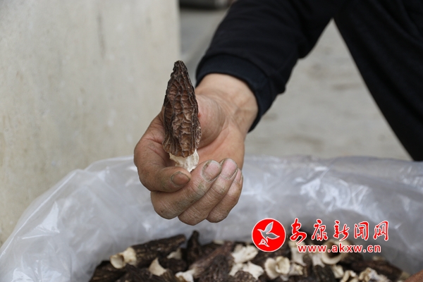 把近70斤干羊肚菌扎袋裝車,開著三輪車載著妻子的胡章志滿臉笑容,馬上就要把這些農(nóng)產(chǎn)品送給訂購(gòu)商了,他長(zhǎng)長(zhǎng)舒了一口氣說(shuō):“早上接到的電話,讓我送貨,500塊一斤,這一車能賣三萬(wàn)多,心里特別高興!”