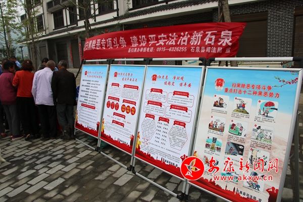 營(yíng)造濃厚宣傳氛圍。安排專(zhuān)人利用宣傳車(chē)常態(tài)化在城區(qū)、鎮(zhèn)村沿線(xiàn)巡回播放掃黑除惡音頻,利用2塊公共場(chǎng)所大型LED持續(xù)播放掃黑除惡宣傳片、標(biāo)語(yǔ)等,通過(guò)“法治石泉”微信、微博推送掃黑除惡工作動(dòng)態(tài)及應(yīng)知應(yīng)會(huì)知識(shí)等,大力宣傳掃黑除惡的重要意義、重大成果、舉報(bào)途徑等,為掃黑除惡專(zhuān)項(xiàng)斗爭(zhēng)深入開(kāi)展?fàn)I造濃厚氛圍。