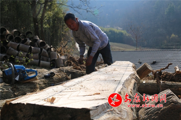石泉新場(chǎng)村村民許興平這幾天在幫同村的陳開(kāi)錫家建房,因?yàn)榈靥幤h(yuǎn),只能建造磚混結(jié)構(gòu)的房屋,需要利用木料的地方很多,這也讓許興平的木匠手藝派上了用場(chǎng)。