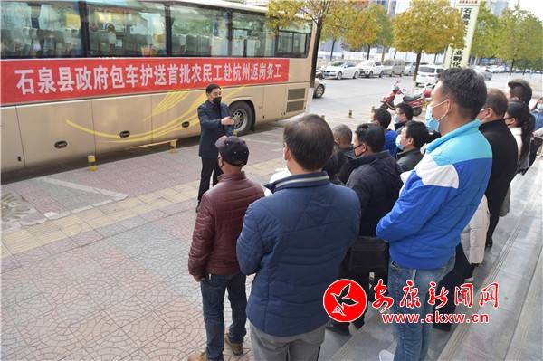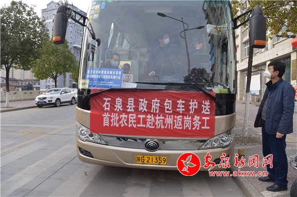石泉縣首批20名農(nóng)民工乘坐政府包車(chē)返崗復(fù)工