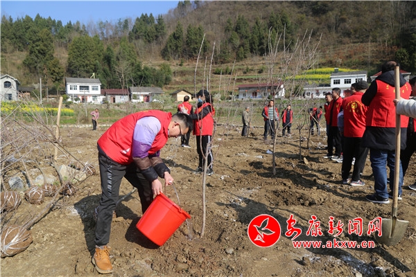 全體鎮(zhèn)機關干部、工作隊員和30余名青年志愿者一到中壩村植樹點就拿起工具,積極投身植樹活動。在活動現(xiàn)場,按照技術員的指導,大家?guī)兹艘唤M,分工明確、配合默契,揮鍬鏟土、扶植樹苗、培實新土,忙得熱火朝天。周邊群眾紛紛加入義務植樹隊伍,經過辛勤勞動,550余株櫻桃樹在春風里昂然挺立,煥發(fā)出勃勃生機。為確保植株成活率,林業(yè)技術人員還進行了現(xiàn)場指導。