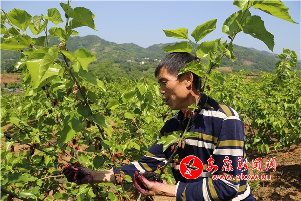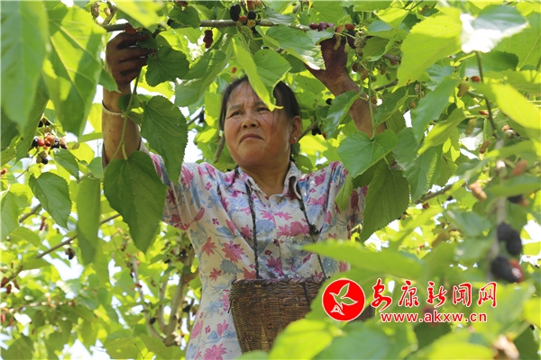 以“滄海桑田”聞名的明星村種植桑樹上千余畝,其中果桑面積占有300余畝,盛果期的果桑樹掛果量可達2500斤每畝。五月正是桑葚采摘上市的時候,果園里到處都能看到農(nóng)戶們忙著采摘成熟桑葚的身影。據(jù)了解,這些農(nóng)民都是附近的村民,他們將桑葚采摘后送往加工廠,每斤桑葚能賺1元錢,手腳麻利的村民一天能摘上百斤,也算是一筆可觀的收入。