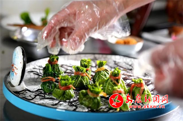 在景區(qū)內(nèi)有一種特色蠶桑宴——“炸桑葉、涼拌桑葉、桑葉丸子湯、桑葉漿水面、桑葉餃子饅頭、桑葉涼粉、桑葚甜酒、炸蠶蛹、桑葉炒雞蛋、桑葉茶、桑葚酒、桑園辣子雞……”幾十道“桑葉”主題特色美食讓游客們垂涎欲滴。一盤炸桑葉10來片,能賣到18元,平均一片就達到近兩元,其他菜品單價也是28-88元之間不等,與1200斤桑葉喂養(yǎng)一張蠶賣2500元的好價錢相比較,經(jīng)濟效益要高幾百倍。