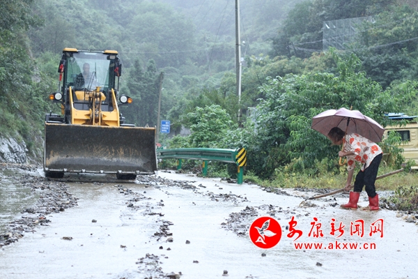 “我是自愿出來(lái)清掃道路的,雨這么大,干部忙不過(guò)來(lái),我也想干點(diǎn)啥。”住在集鎮(zhèn)社區(qū)的王永芝說(shuō)道。她主動(dòng)拿起掃把,戴著雨帽,清掃著山腳下的碎石和泥水。