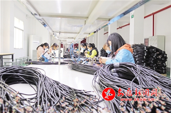 通過(guò)加工電子線束,黃海英們的生活得到了顯著改善。“以前送完孩子上學(xué),就沒事干了。自從我們這里有了這家電子線束加工廠,每天趁著娃上學(xué)后來(lái)這里做工,一月能掙3500多元,隨著技術(shù)熟練工資還會(huì)漲,日子越來(lái)越有奔頭了。”黃海英說(shuō)。