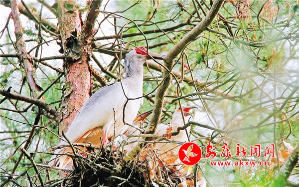 石泉縣草池灣朱鹮保護(hù)區(qū)今年又添朱鹮小寶寶