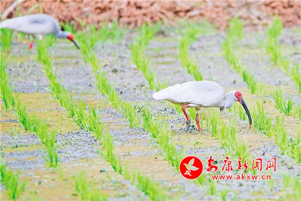 開(kāi)幕式現(xiàn)場(chǎng),石泉縣城關(guān)第二小學(xué)的師生代表共同宣讀了朱鹮保護(hù)倡議書(shū),與會(huì)嘉賓還向石泉縣新成立的朱鹮保護(hù)志愿者服務(wù)隊(duì)進(jìn)行了授旗。當(dāng)?shù)劓?zhèn)村干部組成志愿服務(wù)插秧隊(duì),與群眾同耕“連心田”,助農(nóng)“三夏”生產(chǎn),共同守護(hù)糧食安全。鎮(zhèn)村干部挽起袖子褲腿,下到稻田里,帶領(lǐng)大家一起體驗(yàn)插秧的樂(lè)趣,傳遞以傳統(tǒng)耕作方式踐行有機(jī)農(nóng)業(yè)理念,表達(dá)擼起袖子加油干,全面推進(jìn)鄉(xiāng)村振興的信心和決心。