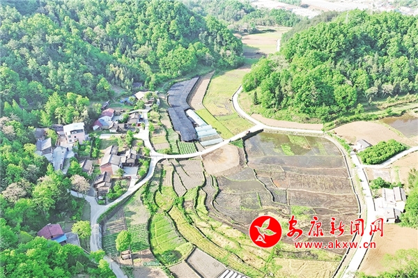 航拍石泉縣城關(guān)鎮(zhèn)絲銀壩村草池灣田園風(fēng)光